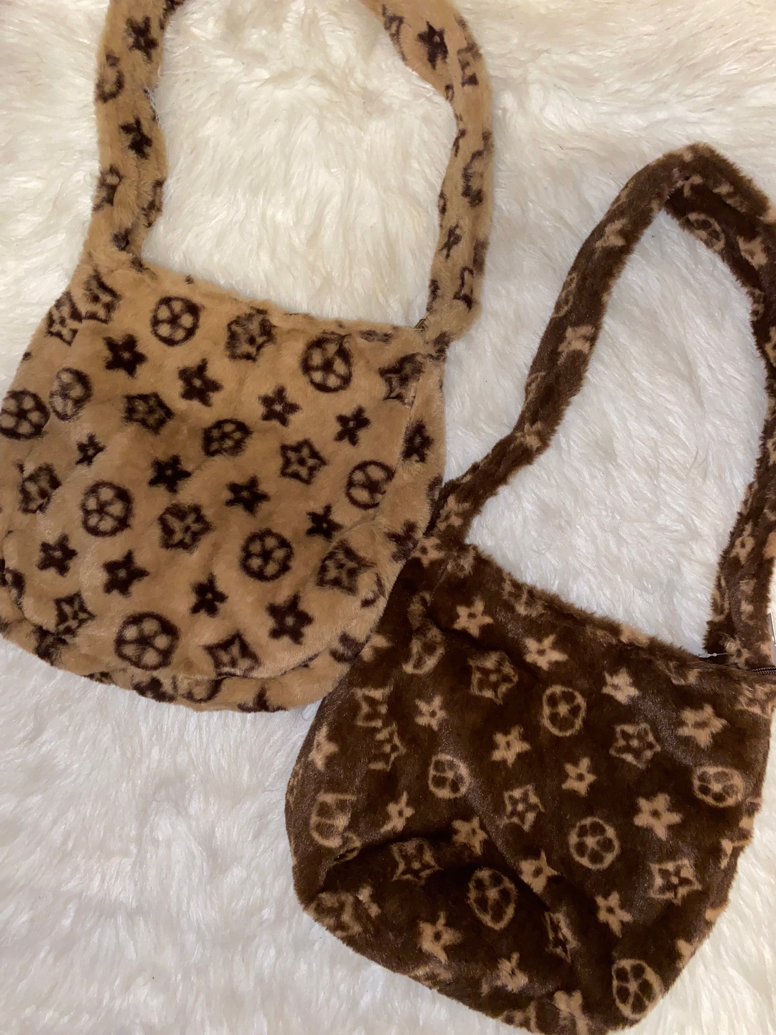Wear this cute furry inspired monogram bag/purse on your side like a regular shoulder purse or throw it across your neck/shoulders as a crossover purse. Super cute either way! Very spacious inside with zipper to open and close bag.